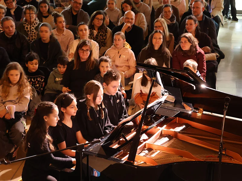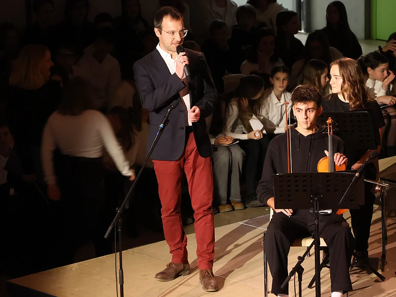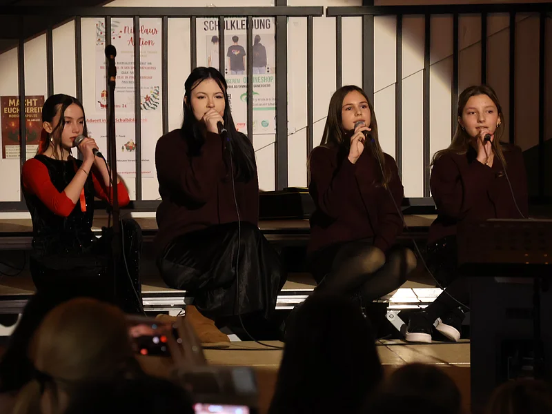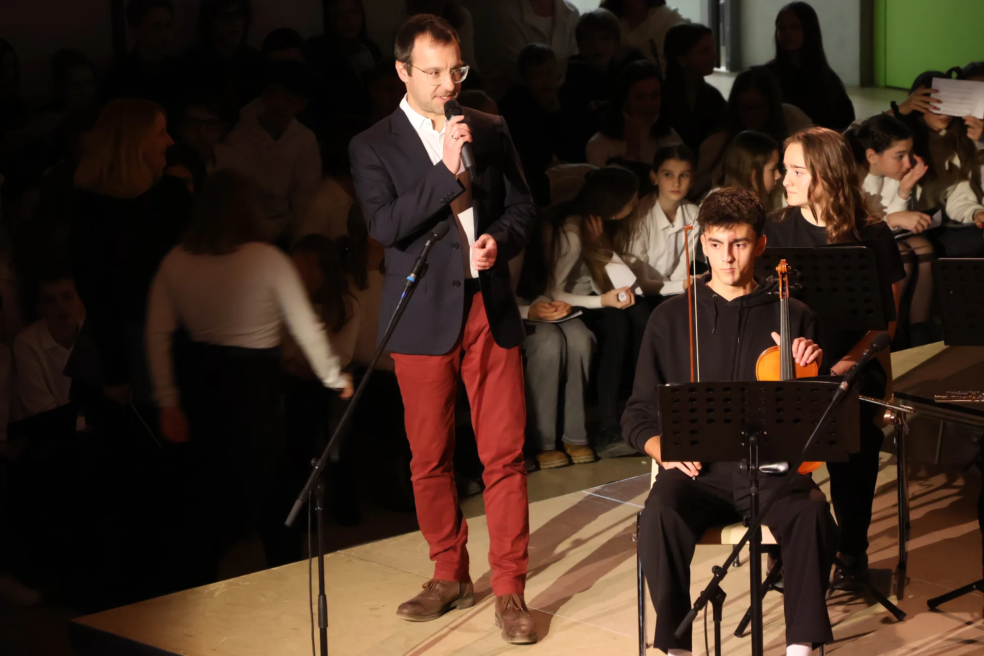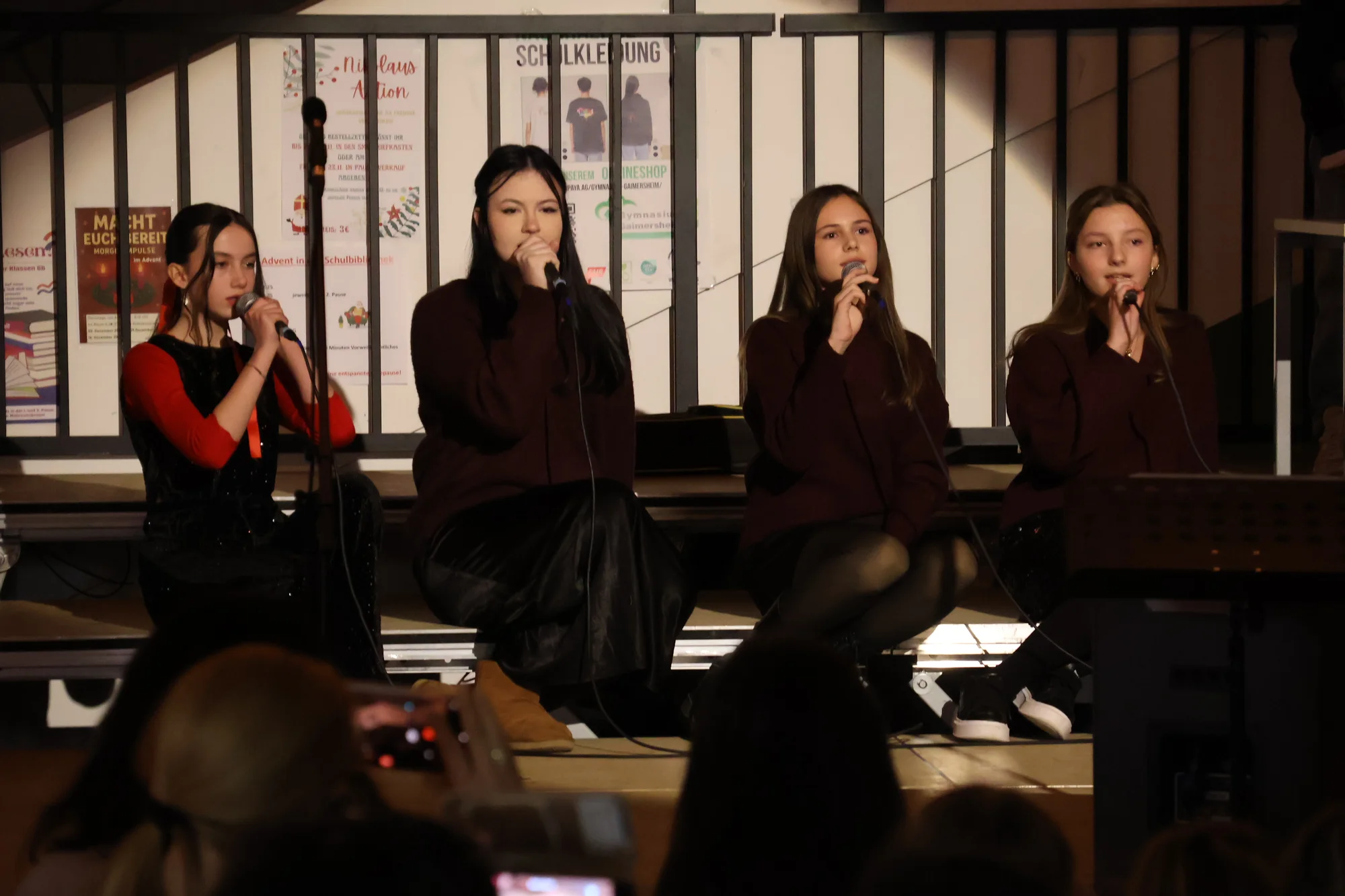 Den musikalischen Höhepunkt des Abends bildete schließlich das Weihnachtskonzert. Eröffnet wurde es vom Schulorchester unter der Leitung von Theresa Schnizlein, das vier Weihnachtslieder erklingen ließ. In der voll besetzten Aula begrüßte anschließend der stellvertretende Schulleiter Stefan Liepold die Anwesenden und lud dazu ein, diese musikalische Stunde bewusst als persönlichen Ruhepol am Ende der Adventszeit zu erleben. Mit den „Pianosternchen“ und „Klavier, Cello & Gesang“ traten in der Aula auch kleinere Musikgruppen auf, die wundervolle Melodien erklingen ließen.