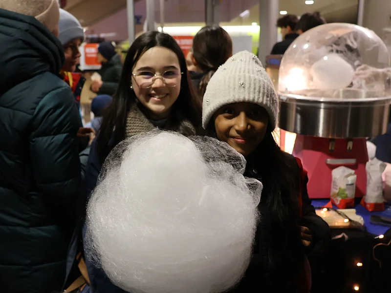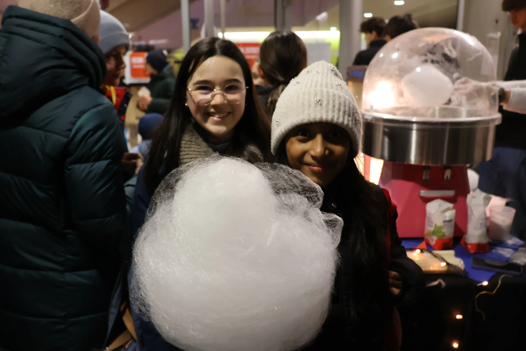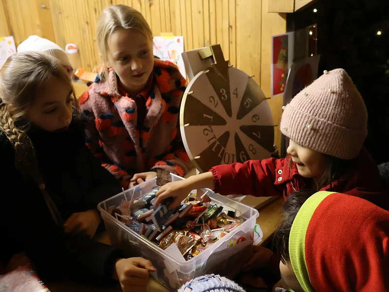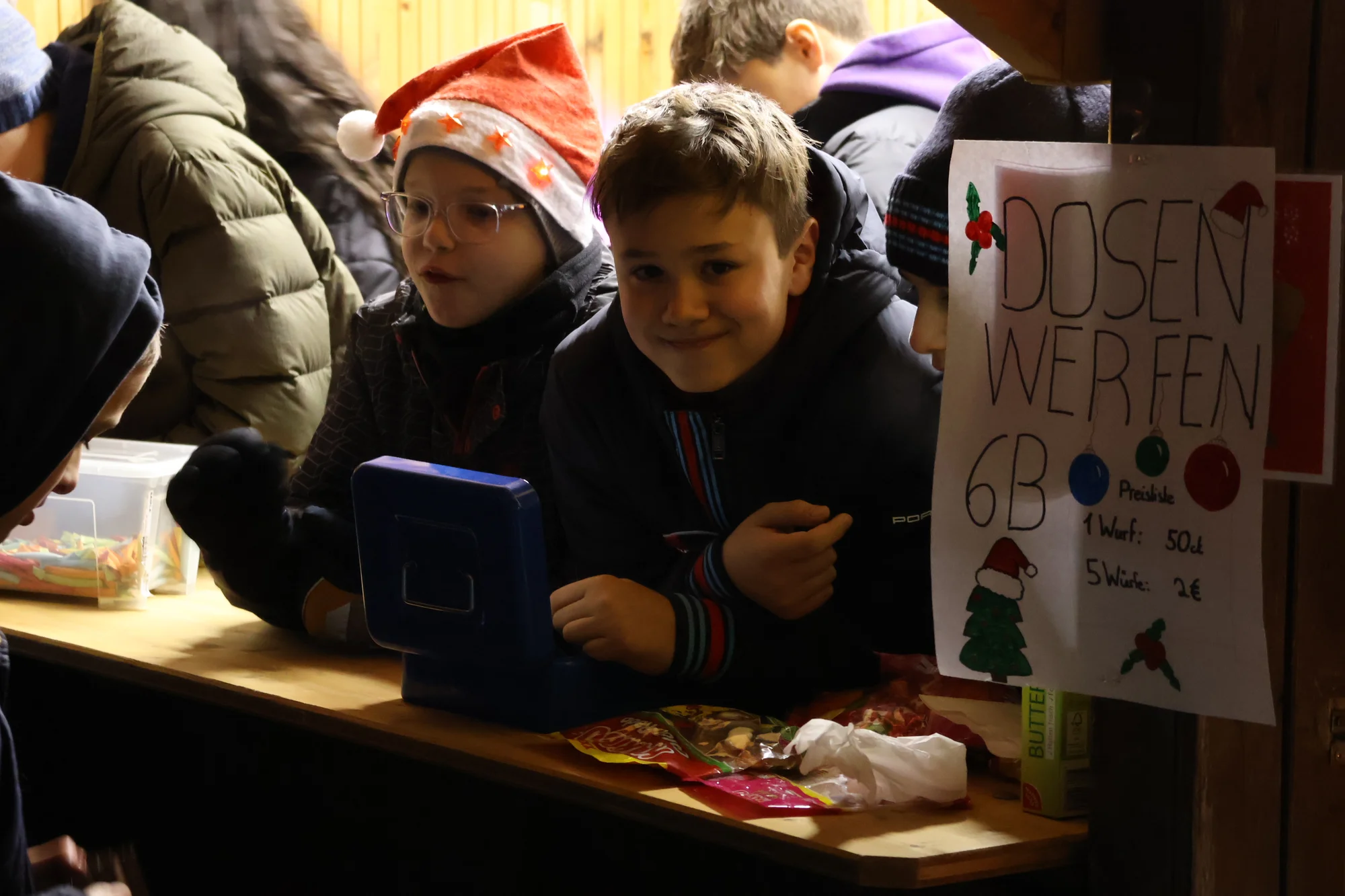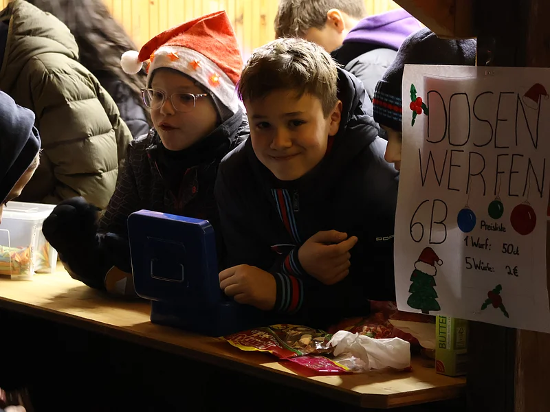 In den liebevoll geschmückten Hütten vor dem Schuleingang, die dankenswerterweise vom Markt Gaimersheim zur Verfügung gestellt wurden, präsentierten zahlreiche Klassen, Lehrkräfte und Eltern ein vielfältiges Angebot an weihnachtlichen Köstlichkeiten und selbst gestalteten Dekorationsartikeln, was die große Kreativität und Einsatzbereitschaft der Schulgemeinschaft widerspiegelt: Von Plätzchen- und Lebkuchenverkauf über Tombola, Weihnachtskartenwerkstatt und Spieleaktionen bis hin zu Büchsenwerfen, Kegeln und Weihnachtsliederraten war für Groß und Klein etwas geboten. In entspannter Atmosphäre entstanden zahlreiche angeregte Gespräche – besonders erfreulich auch mit vielen ehemaligen Abiturientinnen und Abiturienten, die diesen Abend mittlerweile traditionell für einen Besuch an ihrer früheren Schule nutzen.