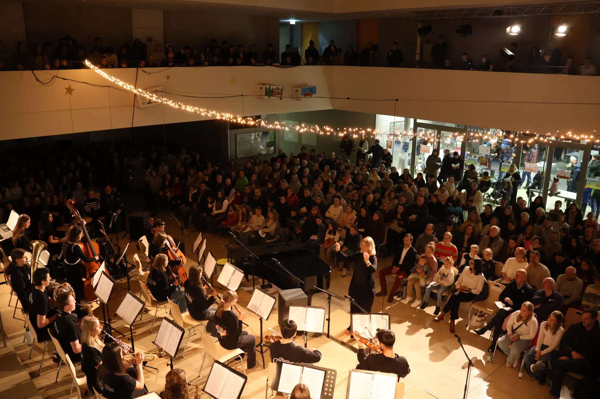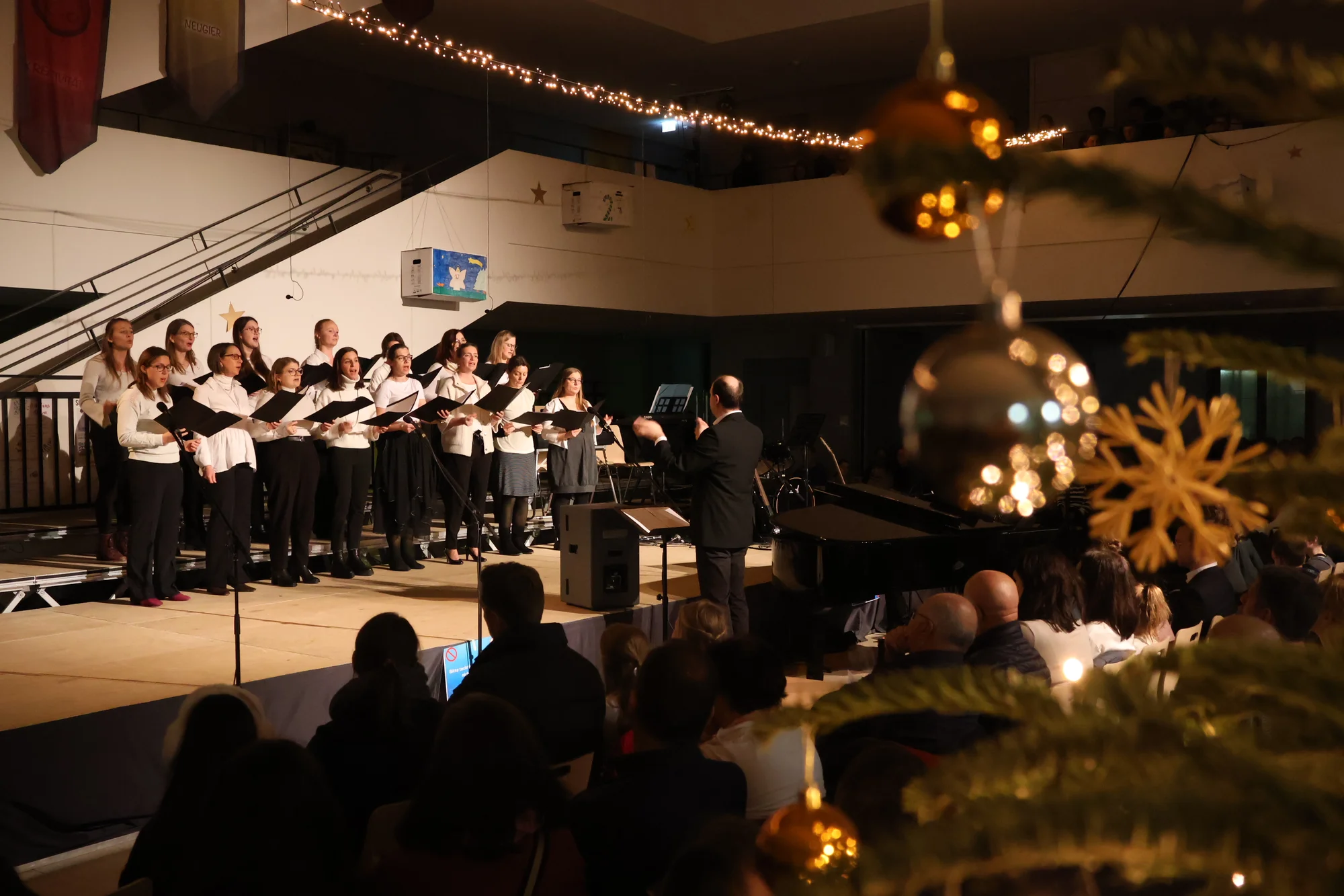Das Weihnachtskonzert mit begleitendem Weihnachtsbasar hat sich in der noch jungen Geschichte des Gymnasiums Gaimersheim längst zu einer liebgewonnenen Tradition am Ende des Kalenderjahres entwickelt. Entsprechend groß war der Andrang, als mehrere hundert Besucherinnen und Besucher die Aula und den Pausenhof der Schule füllten, um gemeinsam innezuhalten und sich auf das bevorstehende Weihnachtsfest einzustimmen. Die gesamte Schulgemeinschaft trug zum Gelingen des Abends bei und sammelte dabei zugleich Spenden für wohltätige Zwecke.