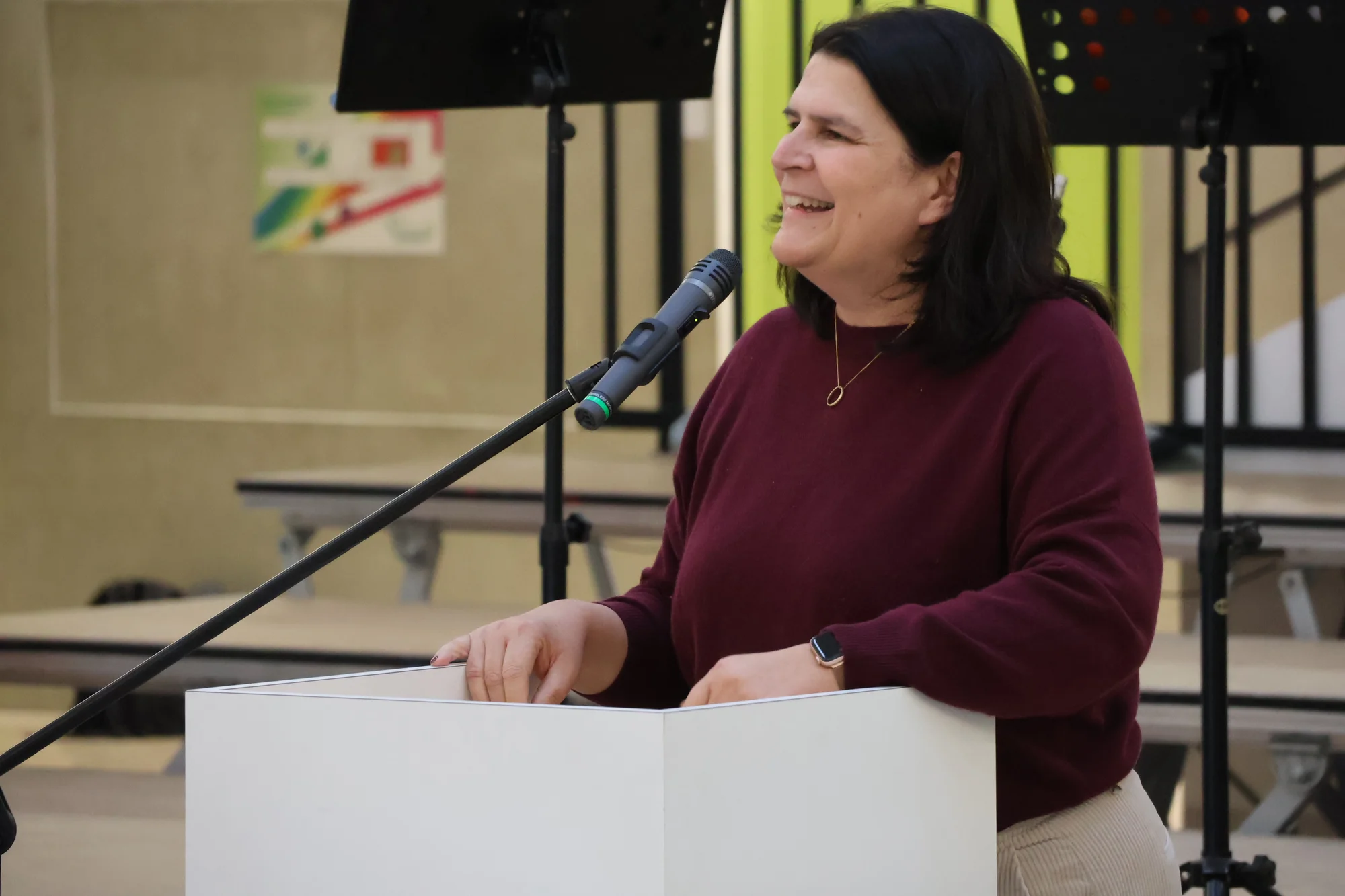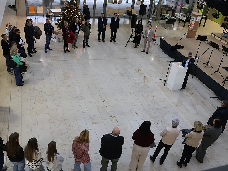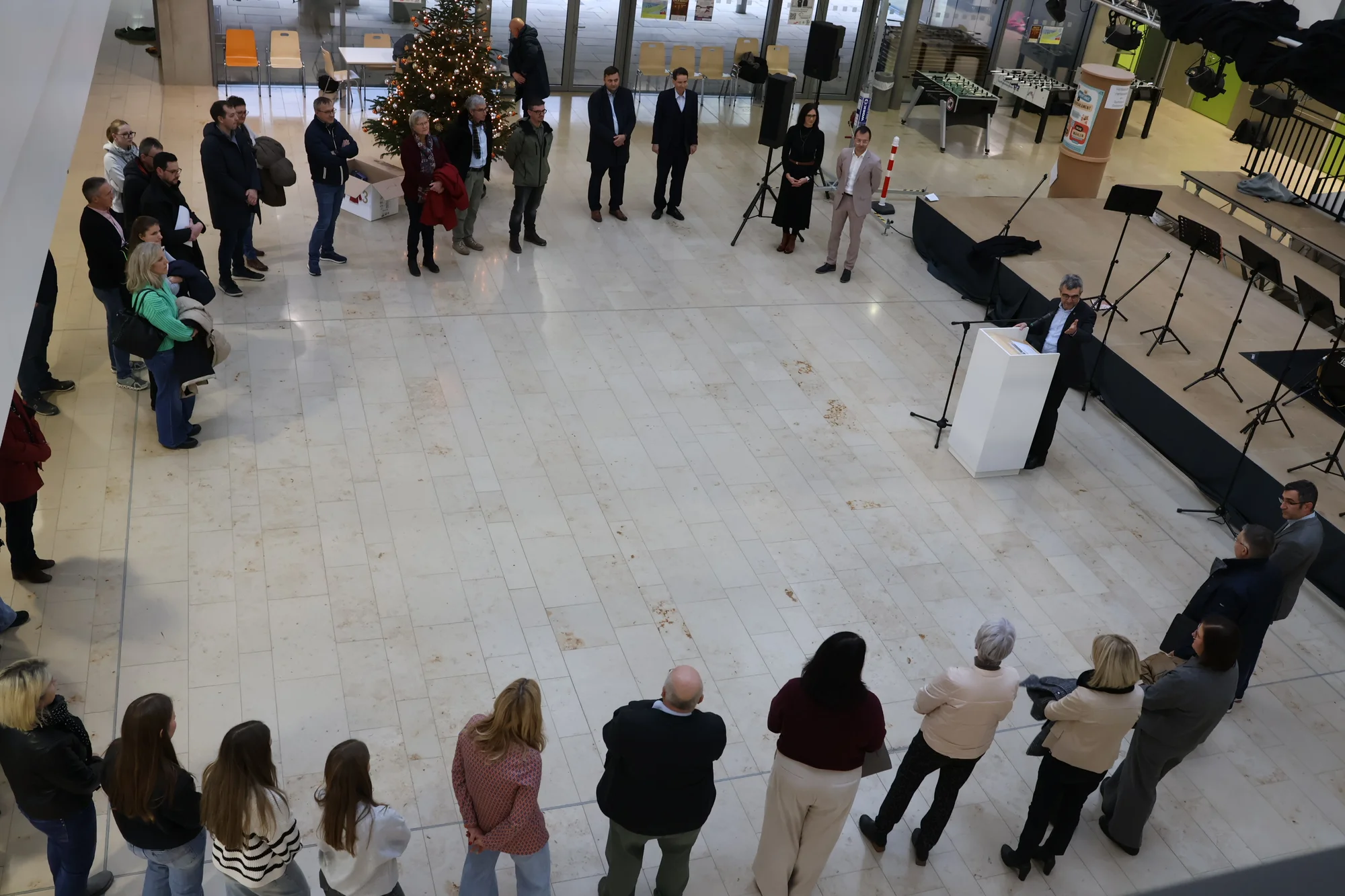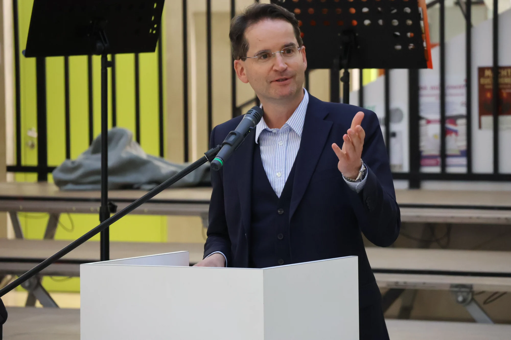 Stefan Liepold, der stellvertretende Leiter des Gymnasiums, schilderte in seinem Redebeitrag die aktuelle Lage der Schule und bedankte sich beim Sachaufwandsträger und allen Beteiligten, dass dieses Erweiterungsprojekt trotz finanzieller Herausforderungen zum wohl vieler Schülergenerationen angegangen worden ist. Der musikalische Rahmen der Veranstaltung kam von der Bläsergruppe des Gymnasiums unter der Leitung von Theresa Schnizlein.