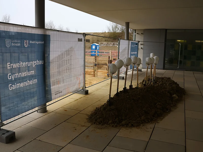 Mit einem symbolischen Spatenstich haben Vertreter von Landkreis Eichstätt und der Stadt Ingolstadt nun auch offiziell den Startschuss für die Erweiterung des Gymnasiums Gaimersheim gegeben. Der Eichstätter Landrat Alexander Anetsberger führte durch die Zeremonie und betonte gleich zu Beginn die Bedeutung des Ausbaus. Er erinnerte daran, dass der Landkreis zusammen mit der Stadt Ingolstadt als Sachaufwandsträger für einen Großteil der Baukosten aufkommt. Diese Kosten seien, laut Anetsberger, gut investiert, da der Bedarf an Schulplätzen weiter wachse. Künftig soll das Gymnasium, das im Moment 903 Kinder und Jugendliche besuchen, fünfzügig ausgebaut werden.